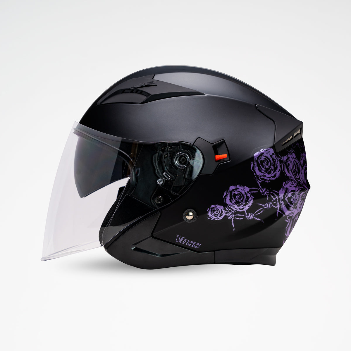 Destaca en la carretera con el Voss 310 Tucson Skull & Rose Edition. El exclusivo diseño de rosa morada y calavera sobre un caparazón negro seguramente llamará la atención y atraerá a la ciclista femenina audaz y a la moda.